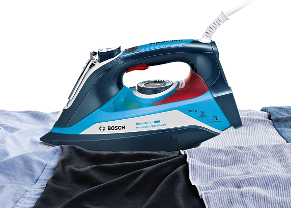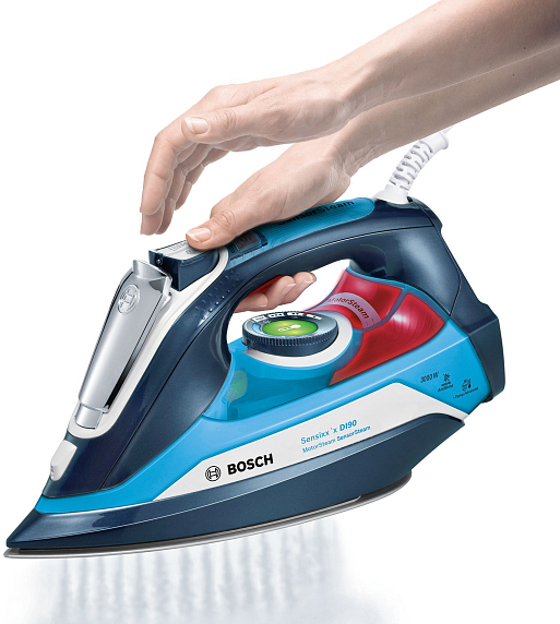 Утюг Bosch TDI 903031A — это мощная компактная паровая станция. Помпа MotorSteam обеспечивает глубокое проникновение пара в несколько слоев ткани. Благодаря Sensor steam прибор включается при касании ручки. Автопрограмма i-Temp подбирает оптимальное сочетание температуры и пара для глажения любого белья, вам не потребуется сортировка по типу ткани.