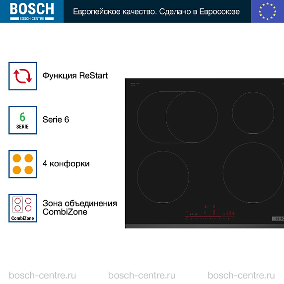 Индукционная варочная панель Bosch PIF631HB1E на 4 конфорки, шириной 59.2 см, черный
