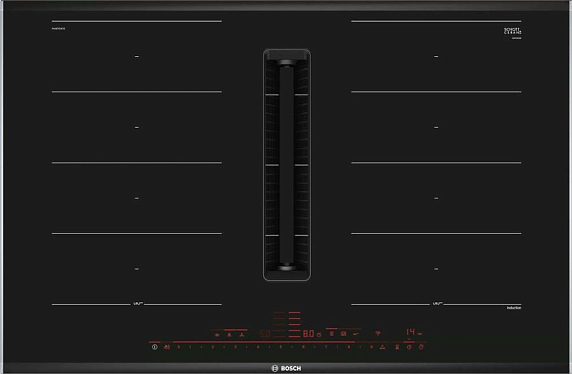 Индукционная варочная панель Bosch PXX875D67E серии Serie | 8 представляет собой интегрированное решение с встроенной вытяжной системой. Модель с четырьмя конфорками и вытяжкой объединяет функции приготовления и очистки воздуха, оптимизируя пространство кухни.