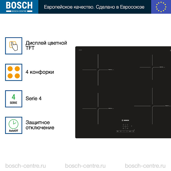 ** Все информационные материалы, представленные на Сайте, носят справочный характер и не могут в полной мере передавать достоверную информацию о свойствах, комплектации и характеристиках товара, включая цвета, размеры и формы. Фирма-производитель оставляет за собой право на внесение изменений в конструкцию, дизайн и комплектацию товара без предварительного уведомления. Перед оформлением Заказа Покупатель должен обратиться к Продавцу для уточнения свойств и характеристик Товара. Подробная информация о товаре указывается в инструкции и на упаковке товара. Используемое название в России: Бош PIE611BB1E