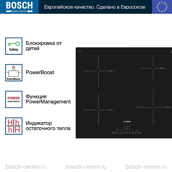 Индукционная варочная панель Bosch PIE611FC5Z на 4 конфорки, шириной 59.2 см, черный