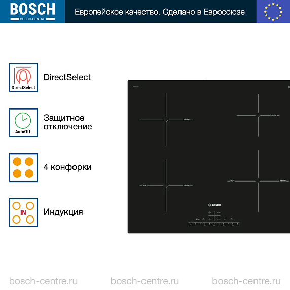 Индукционная независимая варочная панель Bosch PIE611FC5Z — модель сенсорным управлением DirectSelect.
