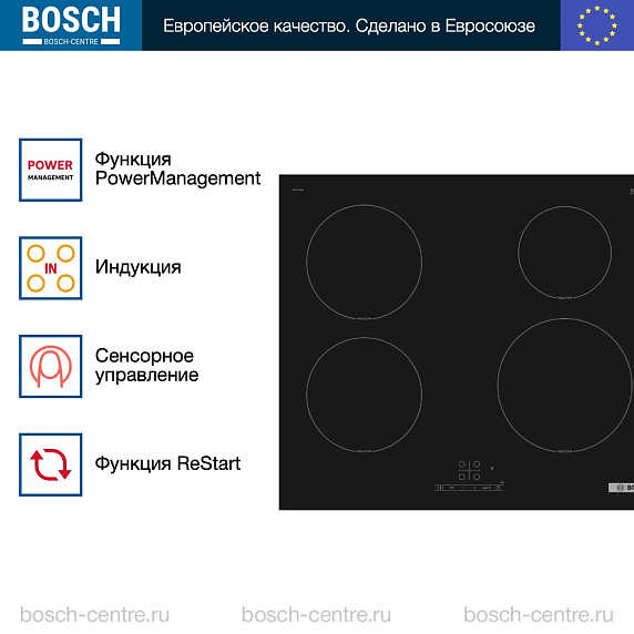Индукционная варочная панель Bosch PIE61RBB5E на 4 конфорки, шириной 59.2 см, черный