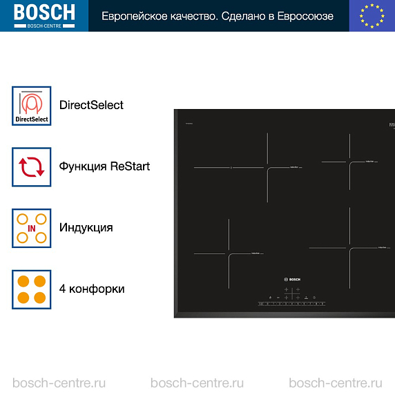 Индукционная варочная панель Bosch PIF651FB1E на 4 конфорки, шириной 59.2 см, черный