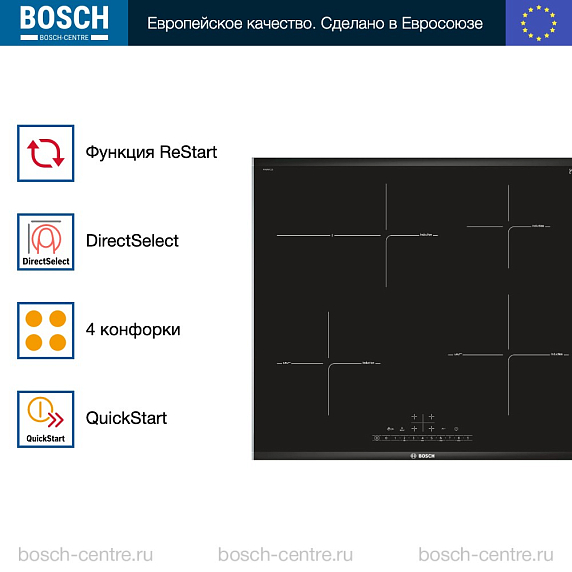 Индукционная варочная панель Bosch PIF675FC1E на 4 конфорки, шириной 60.6 см, черный