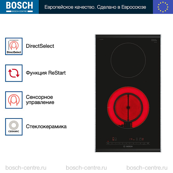 Она оснащена двумя конфорками, что позволяет готовить одновременно несколько блюд, экономя ваше время. Благодаря технологии Hi-Light, скорость нагрева уменьшается. Также отличается компактными размерами. Ее высота составляет всего 3.8 см, ширина — 30.6 см, а глубина — 52.7 см. Габариты ниши для встраивания составляют 27×49-50 см, что обеспечивает легкость установки. Техника Бош это сочетание современного дизайна, функциональности и надежности. Она поможет вам приготовить любимые блюда быстро и качественно, делая процесс удобным и приятным.Дизайн и управление