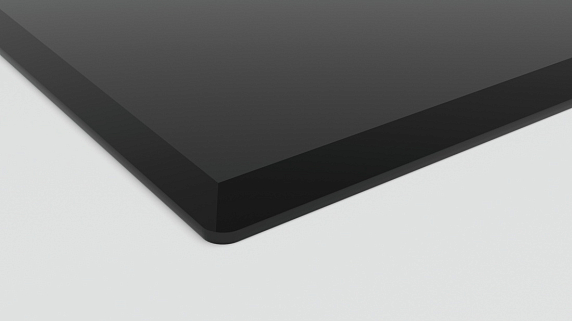 Из четырех конфорок одна имеет зону расширения нагрева — на ней можно готовить в посуде большого и малого диаметра. Скошенный край стеклокерамической панели изготовлен без рамки из нержавеющей стали, плотно примыкает к столешнице и облегчает очистку поверхности. Минимальная высота столешницы для монтажа этой модели — 20 мм.