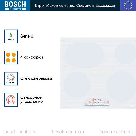 Электрическая варочная панель Bosch PKN652FP2E на 4 конфорки, шириной 59.2 см, белый