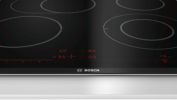 Электрическая варочная панель Bosch PKN675DK1D с независимым сенсорным управлением предназначена для встраивания в столешницу высотой не менее 20 мм.