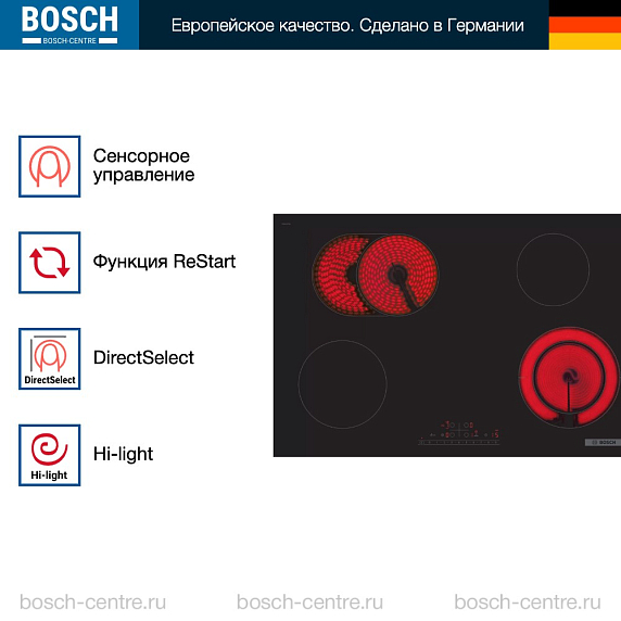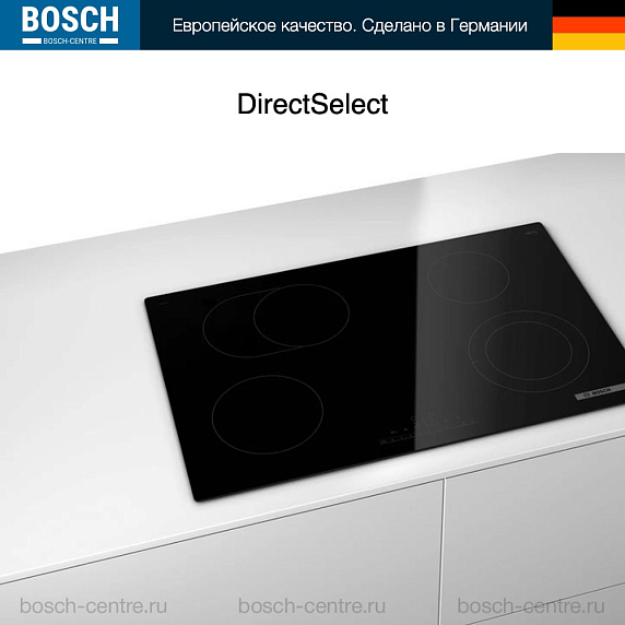 Встроенный таймер позволяет контролировать время приготовления и не беспокоиться о том, что что-то может пригореть. Система управления DirectSelect позволяет выбирать нужную мощность для каждой из четырех конфорок, что очень удобно при приготовлении различных блюд одновременно.