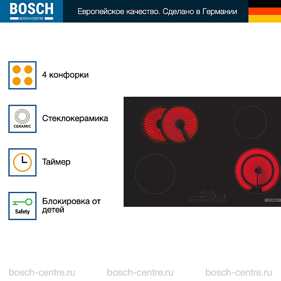 Электрическая варочная панель Bosch PKN811FP2E на 4 конфорки, шириной 80.2 см, черный