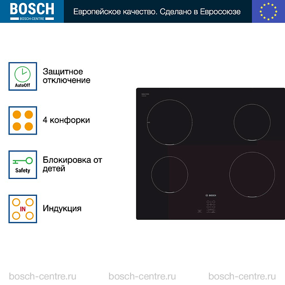 Индукционная варочная панель Bosch PUG611AA5D на 4 конфорки, шириной 59.2 см, черный