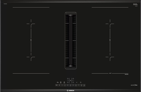 Варочная панель Bosch PVQ895F25E оснащена функцией AutoOn, она включает вентилятор. Режим Power Boost увеличивает мощность одной конфорки и вы можете в считанные минуты вскипятить воду. При непредвиденном отключении устройства, настройки восстановятся при следующем запуске.