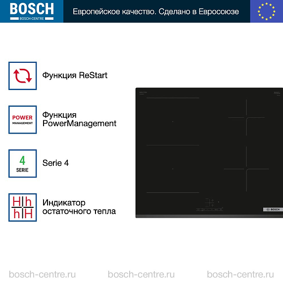 Индукционная варочная панель Bosch PVS63KBB5E на 4 конфорки, шириной 59.2 см, черный