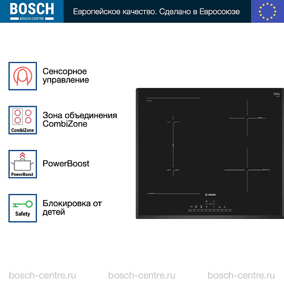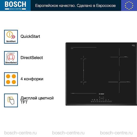 Индукционная варочная панель Bosch PVS651FC5E на 4 конфорки, шириной 59.2 см, черный