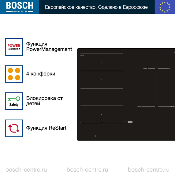 Индукционная варочная панель Bosch PXE601DC1E на 4 конфорки, шириной 57.2 см, черный
