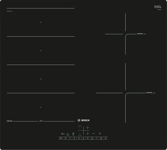 Индукционная варочная панель Bosch PXE611FC1E на 4 конфорки, шириной 59.2 см, черный