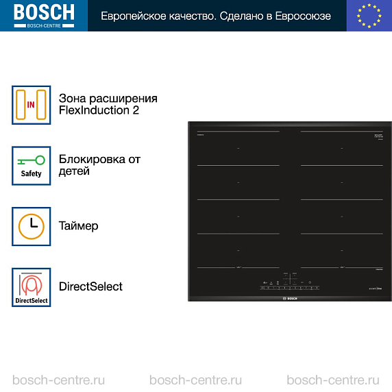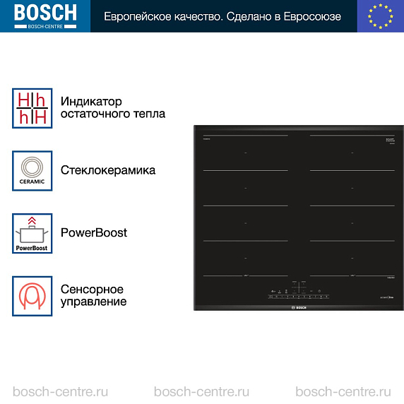 Индукционная варочная панель Bosch PXX695FC5E на 4 конфорки, шириной 60.6 см, черный