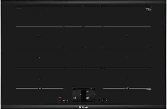 Bosch PXY875KW1E — это индукционная варочная поверхность на четыре конфорки, которые могу попарно объединяться в зоны FlexInduction. Выполнена из стеклокерамики чёрного цвета. Управляется при помощи сенсорных кнопок. Предусмотрено 17 ступеней нагрева. Безопасность эксплуатации обеспечивает блокировка от детей, индикация остаточного тепла и автоматическое отключение.