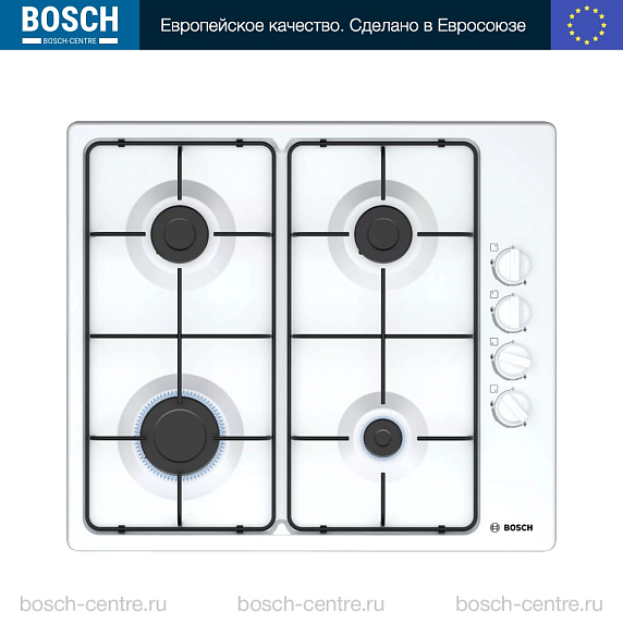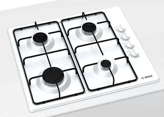 Газовая варочная панель Bosch PBP6C2B82O на 4 конфорки, шириной 58 см, белый
