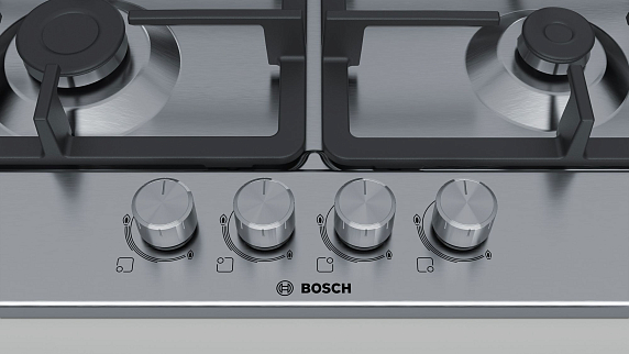Газовая варочная панель Bosch PGP6B5O90R на 4 конфорки, шириной 58.2 см, нержавеющая сталь