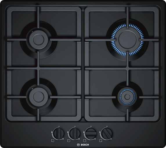Газовая варочная панель Bosch PGP6B6B90R на 4 конфорки, шириной 58.2 см, черный