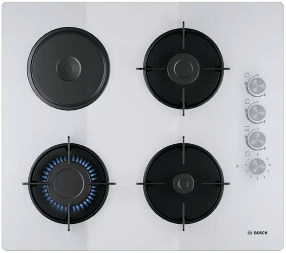 Газовая варочная панель Bosch POY6B2O10Q на 4 конфорки, шириной 59 см, белый