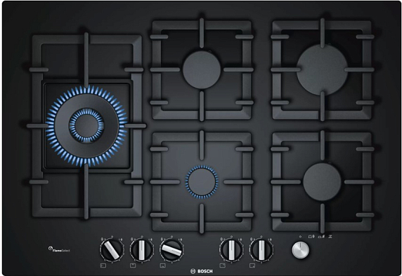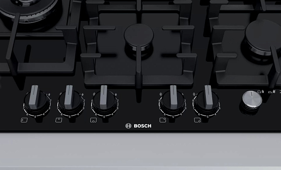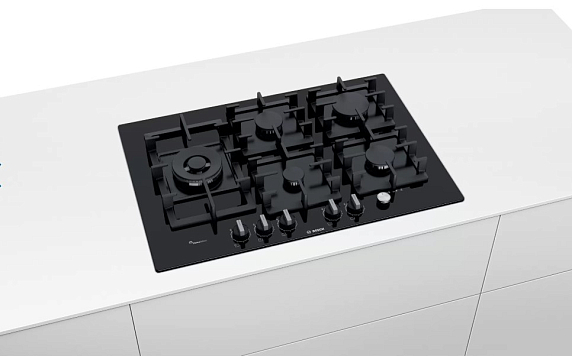 Газовая варочная панель Bosch PPS7A6M90R на 5 конфорки, шириной 75.2 см, черный