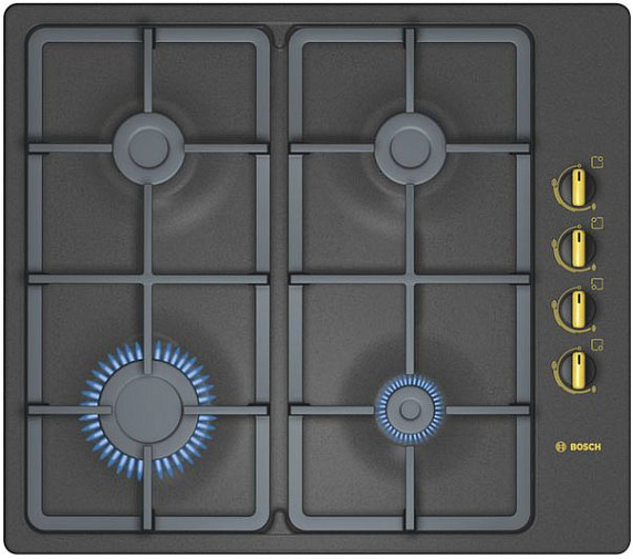 Газовая варочная панель Bosch PBP 613B90E на 4 конфорки, шириной 58 см, черный
