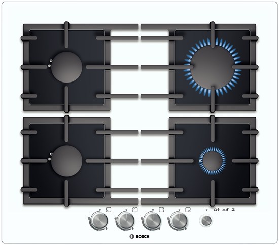 Газовая варочная панель Bosch PPP 612 M91E на 4 конфорки, шириной 59 см, белый