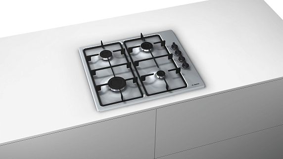 Газовая варочная панель Bosch PBP 6 B5 B 60 на 4 конфорки, шириной 58 см, нержавеющая сталь