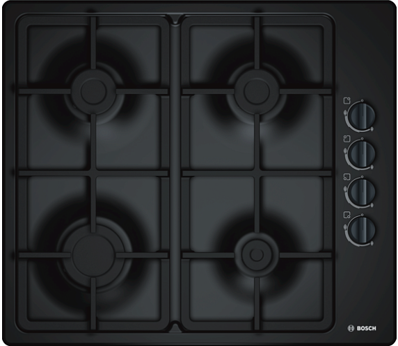 Газовая варочная панель Bosch PBP 6C6B90 на 4 конфорки, шириной 58 см, черный