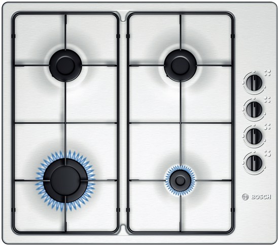 Газовая варочная панель Bosch PBP615B81E на 4 конфорки, шириной 58 см, нержавеющая сталь
