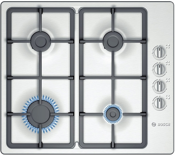 Газовая варочная панель Bosch PBP616B90E на 4 конфорки, шириной 58 см, нержавеющая сталь