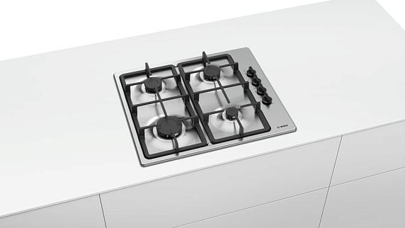 Газовая варочная панель Bosch PBP6C5B91R на 4 конфорки, шириной 58 см, нержавеющая сталь