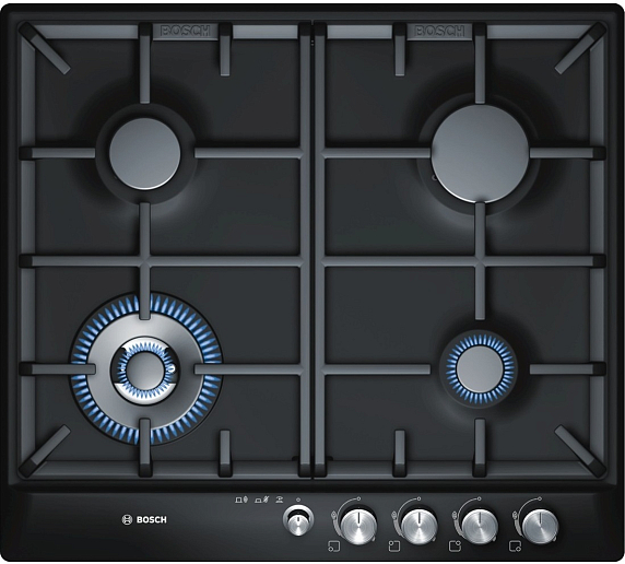 Газовая варочная панель Bosch PCH616M90R на 4 конфорки, шириной 58.2 см, черный