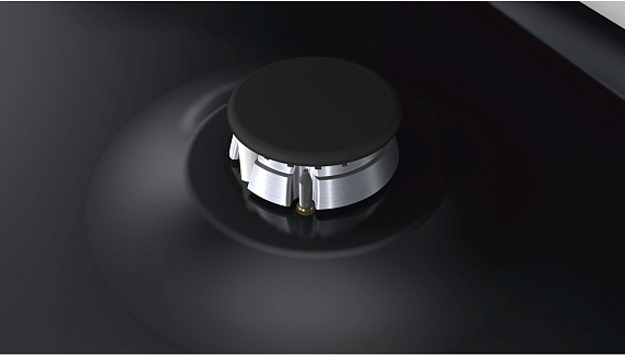 Термоэлектрическая система защиты автоматически блокирует подачу газа при отсутствии пламени, что исключает риск возникновения утечки. Серебристые регуляторы мощности дополняют поверхность в черном исполнении. Чугунные держатели легко снимаются для чистки. Шероховатая поверхность решеток обеспечивает дополнительную устойчивость посуде.