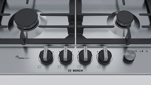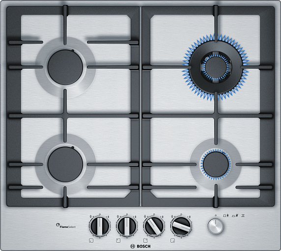 Газовая варочная панель Bosch PCH6A5M90R на 4 конфорки, шириной 58.2 см, нержавеющая сталь