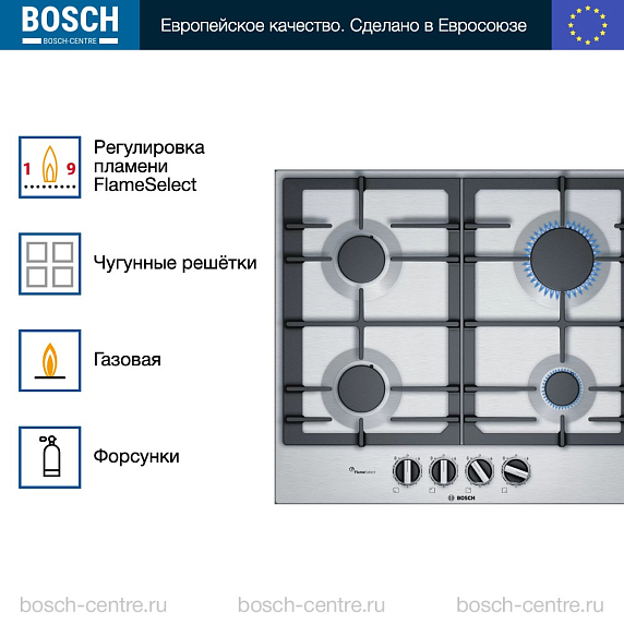 Обзор на газовую варочную панель Bosch PCP6A5B90