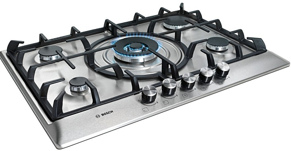 Газовая варочная панель Bosch PCQ 715B90E на 5 конфорки, шириной 70.2 см, нержавеющая сталь
