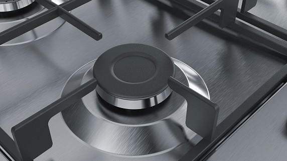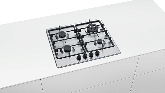 Газовая варочная панель Bosch PGH6B5B60 на 4 конфорки, шириной 58.2 см, нержавеющая сталь