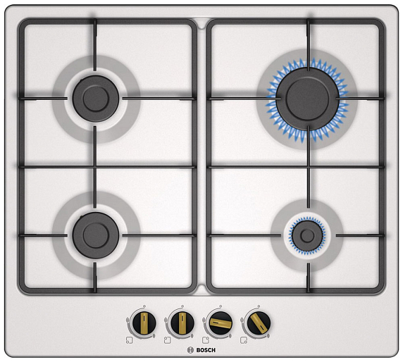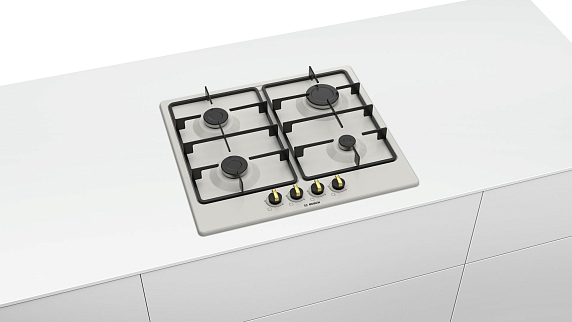 Газовая варочная панель Bosch PGP6B1B60 на 4 конфорки, шириной 58.2 см, жемчужно-белый