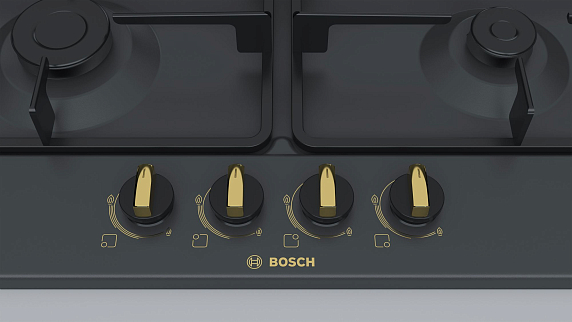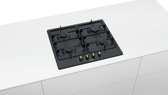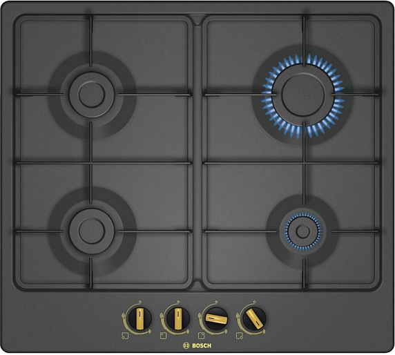Газовая варочная панель Bosch PGP6B3B60 на 4 конфорки, шириной 58.2 см, черный