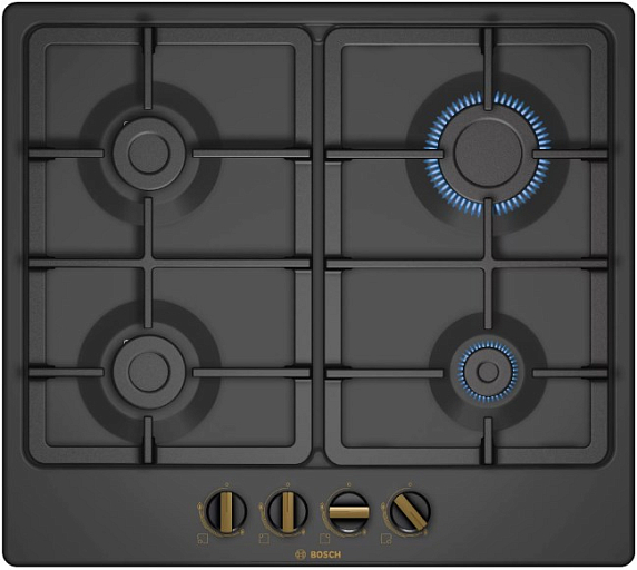 Газовая варочная панель Bosch PGP6B3B90R на 4 конфорки, шириной 58.2 см, черный