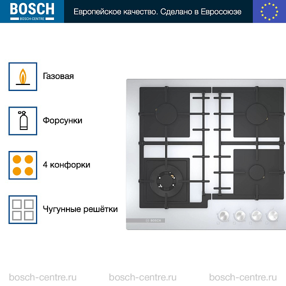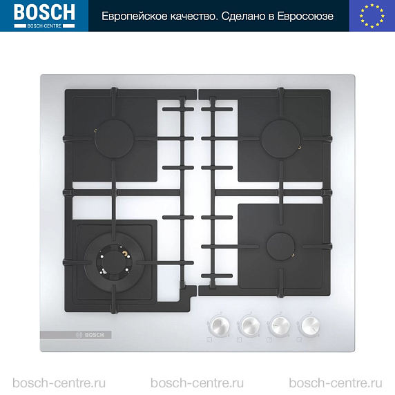 Газовая варочная панель Bosch PNH6B2O92R на 4 конфорки, шириной 59 см, белый