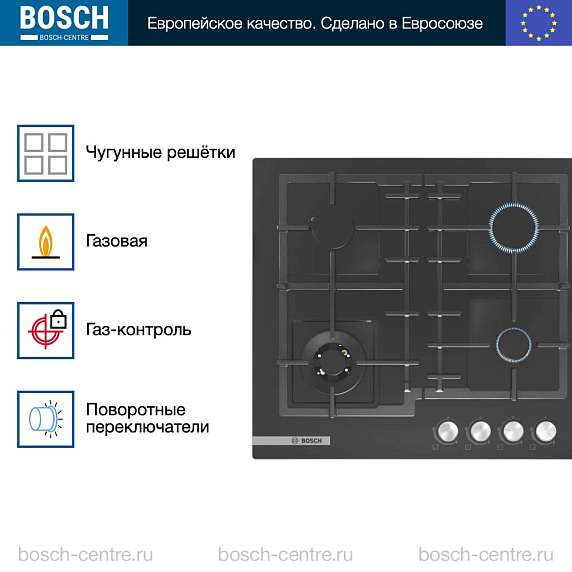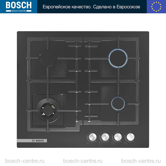 Газовая варочная панель BOSCH PNH6B6O92R на 4 конфорки, шириной 59 см, черный