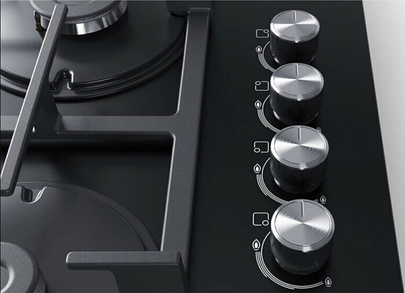 Элементы управления расположены сбоку, вдали от мощной конфорки. Автоматический электроподжиг облегчает использование, нет необходимости пользоваться спичками. Газ-контроль обеспечивает безопасность, в случае затухания пламени подача топлива прекращается.