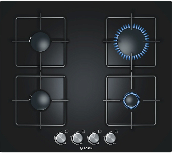 Газовая варочная панель Bosch PPP 616B11 E на 4 конфорки, шириной 59 см, черный