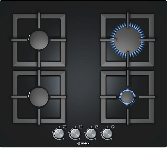 Газовая варочная панель Bosch PPP 616B21 E на 4 конфорки, шириной 59 см, черный