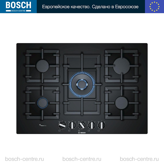 Газовая варочная панель Bosch PPQ7A6B90 на 5 конфорки, шириной 75.2 см, черный